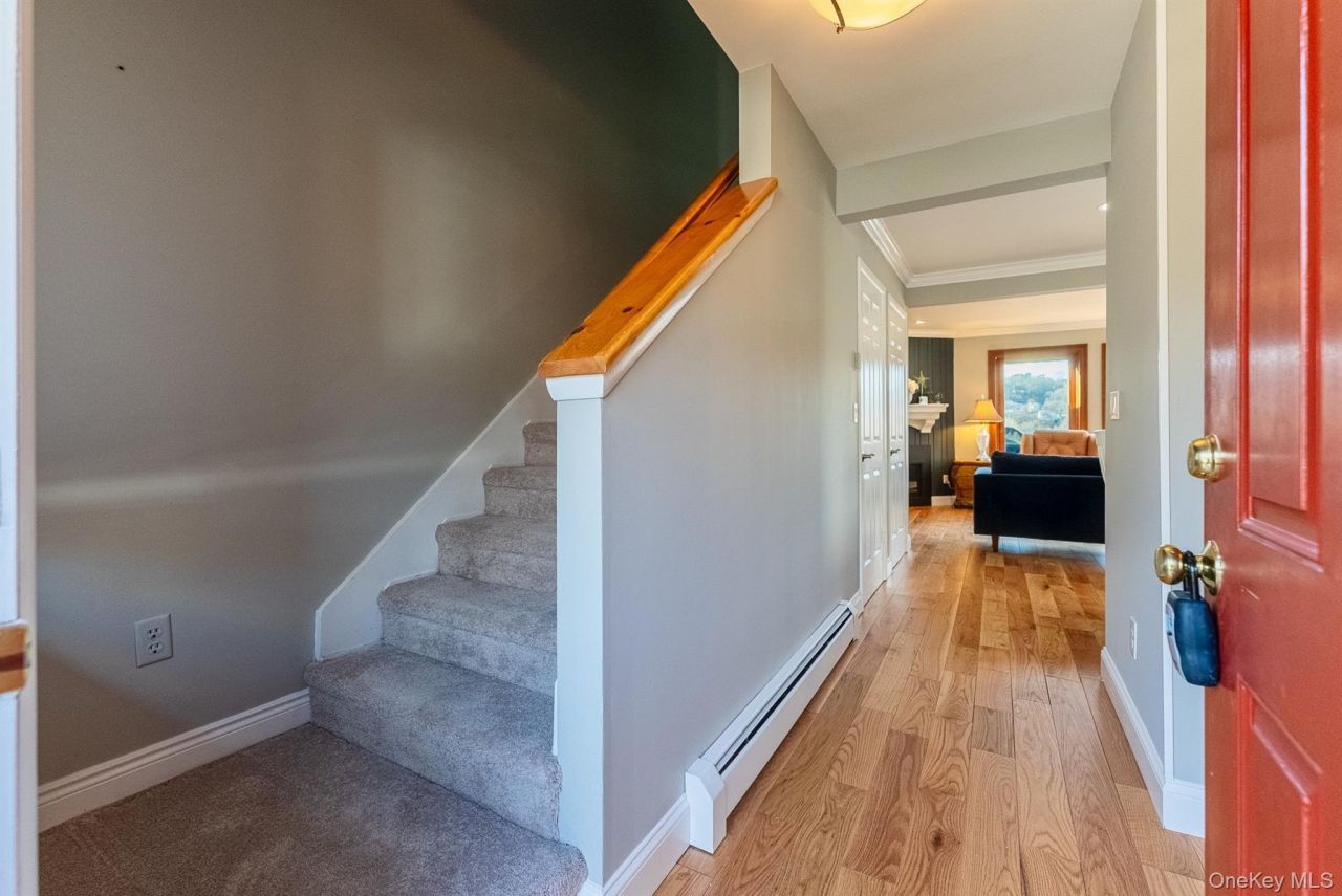 Welcome to this highly desirable end unit townhouse in Rondout Harbor! Overlooking the scenic Rondout creek, where panoramic views of the marinas, Kingston Strand and the Kingston-Port Ewen Bridge create a truly exceptional setting. Inside, you'll find warm hardwood floors and a cozy wood-burning fireplace that anchor the inviting living space. The beautifully appointed kitchen offers both style and functionality, complemented by a convenient half bath on the first floor.