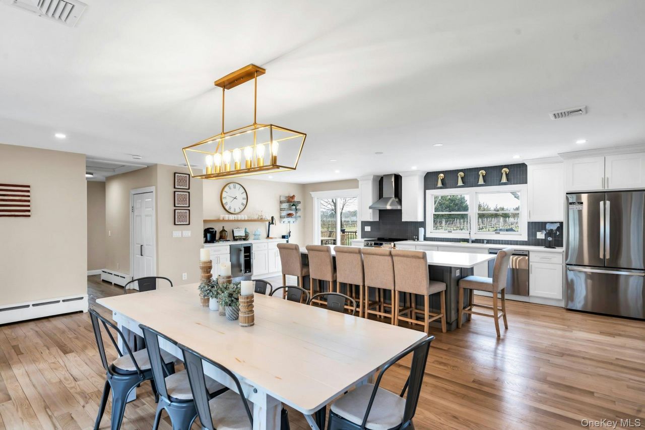 The North Fork Vineyard Retreat: Immerse yourself in the true essence of the North Fork in this rare vineyard-front sanctuary. Designed for those who appreciate an effortless indoor-outdoor lifestyle, the home features two sets of expansive doors that blur the lines between the chic interior and the sprawling backyard deck-the ultimate setting for al fresco summer dining. After a day of exploring, unwind in the brand-new hot tub and watch the sun dip below the horizon, painting the vines in hues of gold. Inside, the residence balances rustic charm with modern sophistication. The heart of the home is a fully renovated eat-in kitchen complete with a dedicated wine bar, flowing seamlessly into a dining area warmed by a cozy fireplace. The impressive family room serves as a focal point, boasting soaring exposed beams and panoramic floor-to-ceiling windows that frame the vineyard views like a piece of art. For rainy days or late-night fun, the finished basement offers a dedicated game and movie room.Positioned in the literal heart of wine country, you are just steps away from award-winning tasting rooms, celebrated local eateries, and the North Fork's most beloved beaches- don't miss out on the opportunity to spend your summer on this premier property! Rental Permit #1420. June $10000, July $15000, August $20,000